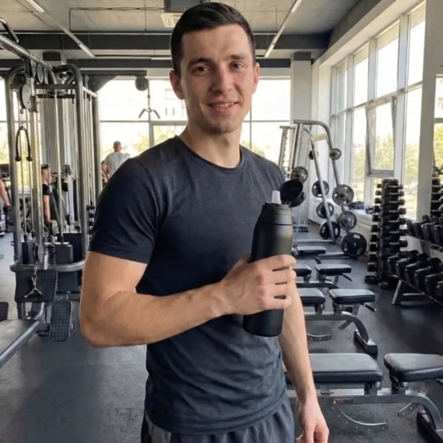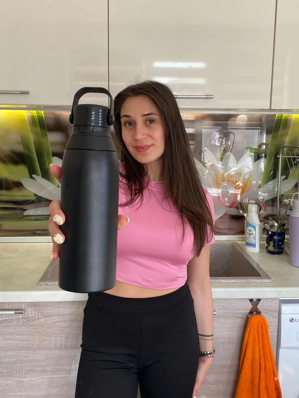 Изработена от здрава неръждаема стомана и с обем за вода 750 мл, бутилката е идеална за работа, спорт и пътуване. Отваря се лесно само с един бутон, а сламката позволява удобно пиене без разливане, така че да можеш спокойно да я носиш навсякъде със себе си.
